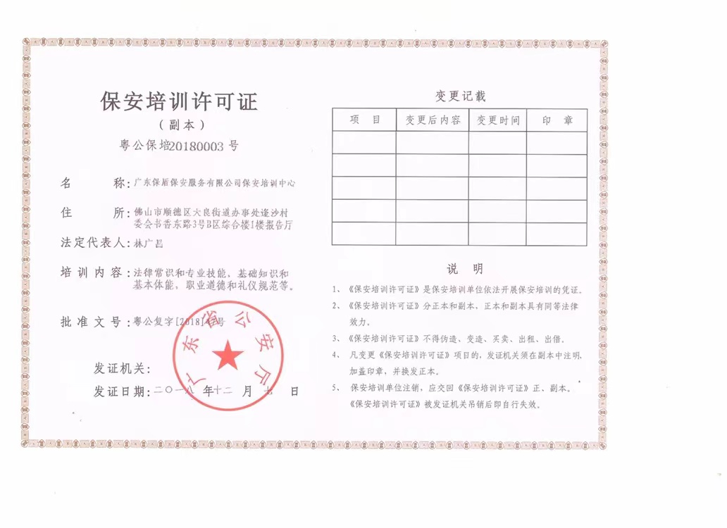 保安培训许可证