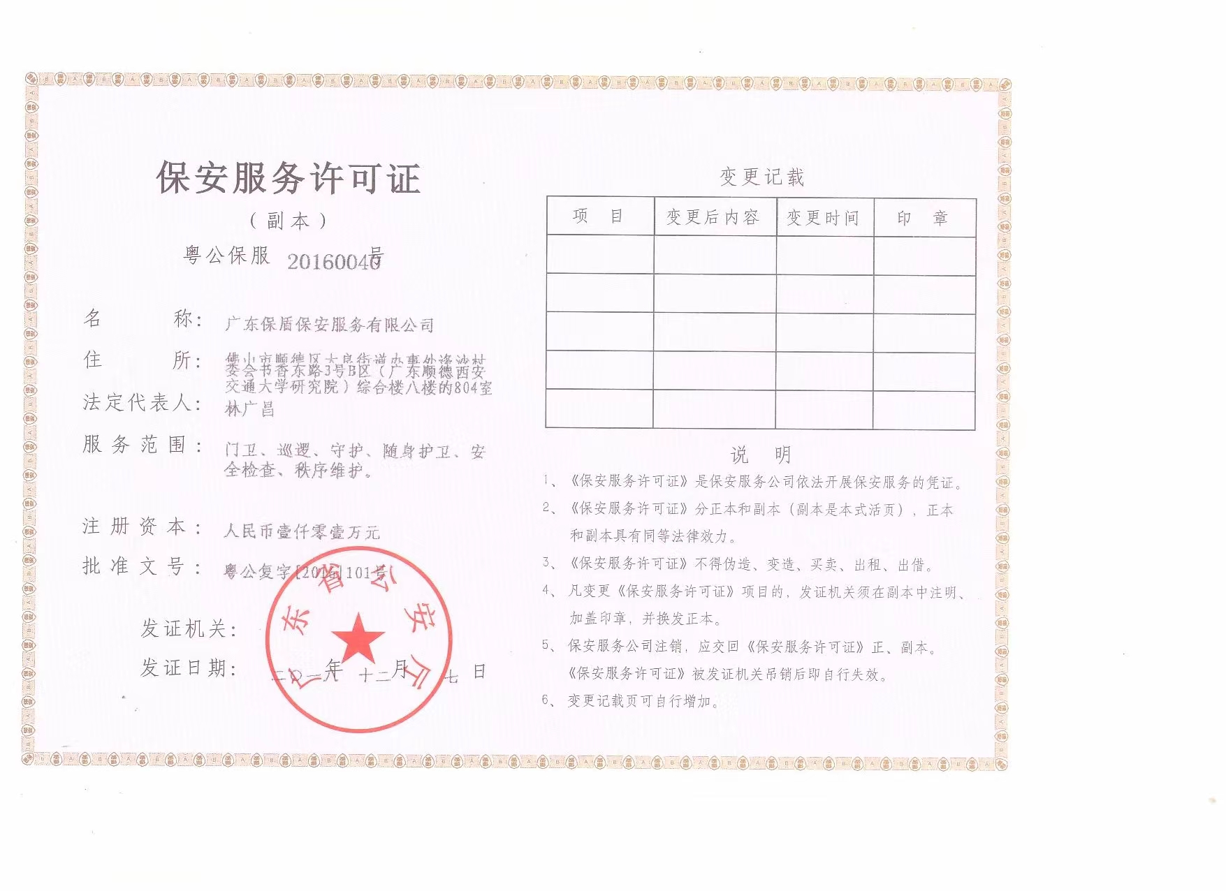 保安服务许可证